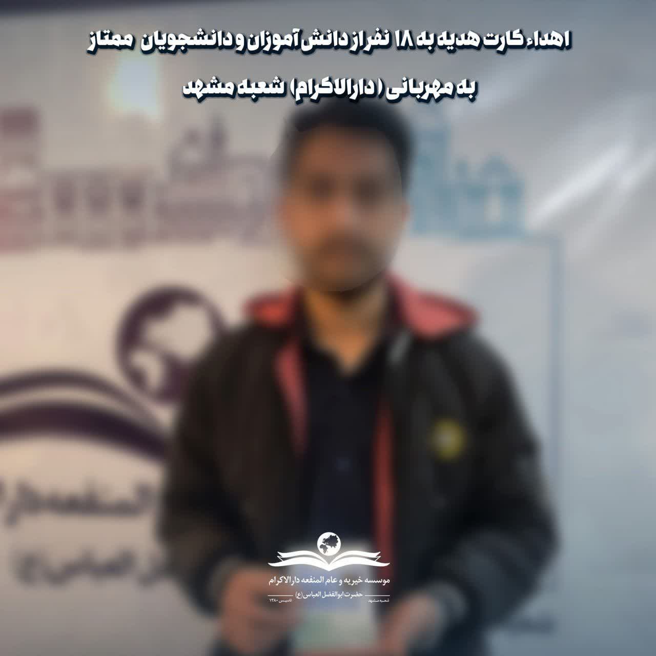 در راستای تداوم برنامههای حمایتی و تشویقی خیریه «بهمهربانی» مشهد (دارالاکرام)، روز ۲۷ آذرماه ۱۴۰۴ تعداد ۱۸ نفر از دانشآموزان و دانشجویان برتر تحصیلی عضو این مؤسسه، کارت هدیه دریافت کردند.