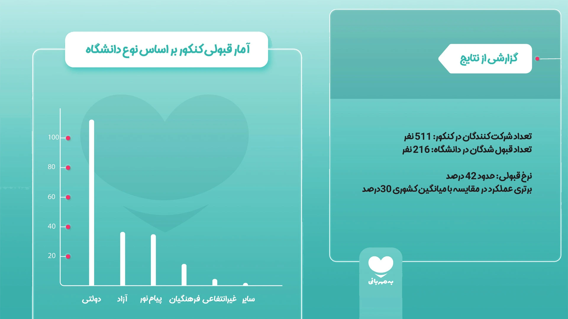 از میان پذیرفتهشدگان، بیش از نیمی (۱۱۰ نفر) در دانشگاههای دولتی پذیرفته شدهاند. این امر نشان میدهد که حمایتهای دارالاکرام در کنار تلاش دانشآموزان، تنها به قبولی در دانشگاه منتهی نشده، بلکه توانسته کیفیت این دسترسی را نیز ارتقا دهد.